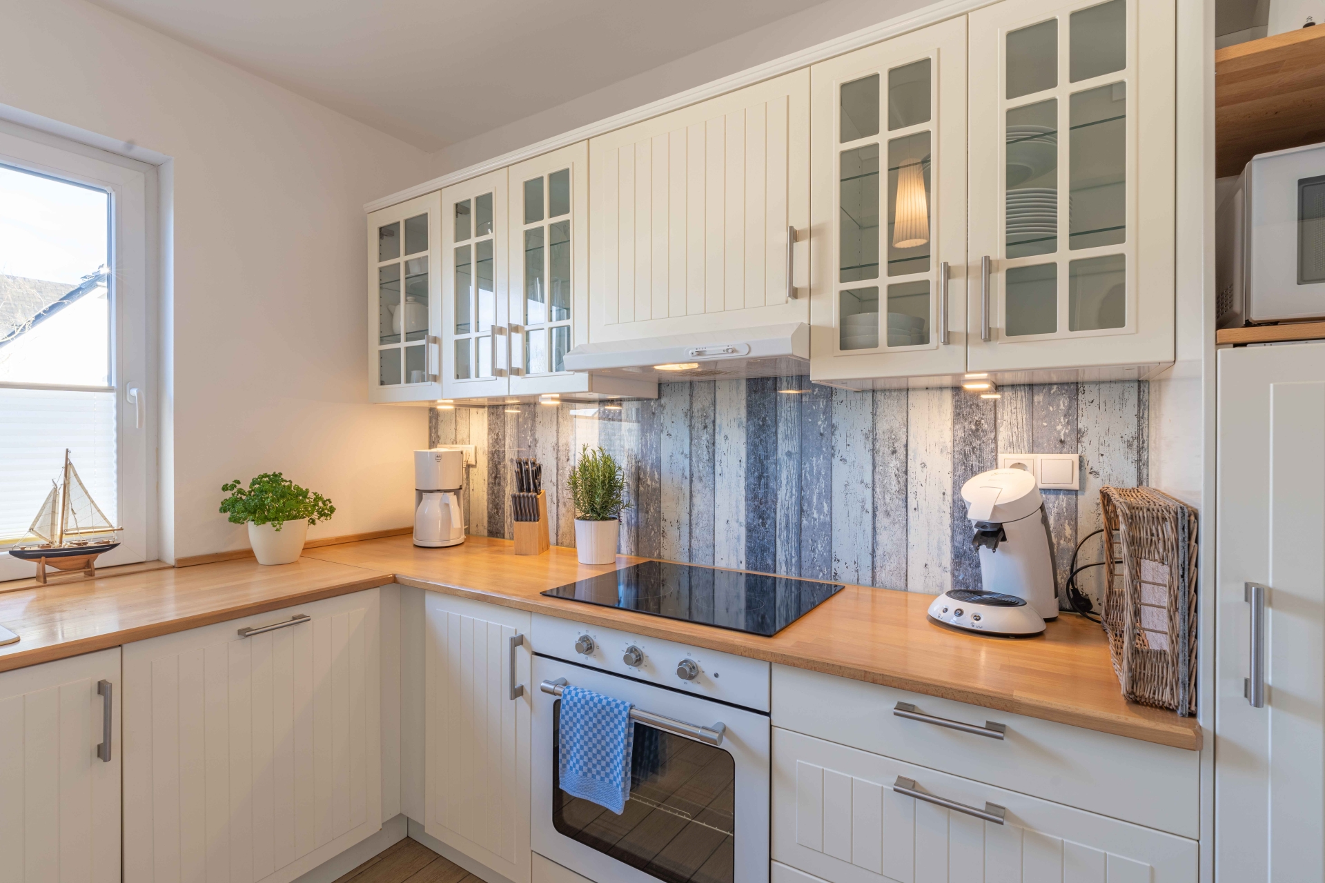 Dieses Apartment im Ober- und Dachgeschoss bietet Platz für 4 Personen und 1 Kleinkind im Babybett. Es verfügt über ca. 90 qm Wohnfläche, ein großzügiges Wohnzimmer mit gemütlichem Sitzbereich, ein Essplatz, eine separate Küche mit allem Komfort, ein Vollbad mit Badewanne und Dusche sowie 3 Schlafräume. Im Garten steht Ihnen ein Sitzplatz mit Strandkorb, Gartentisch- und Stühlen zur Verfügung.